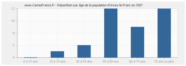- Population d'Uncey-le-Franc de 75 ans ou plus : 12 habitants