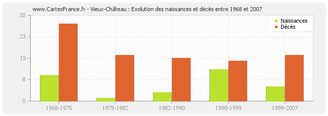 Vieux-Château : évolution des naissances et décès de 1968 à 2007