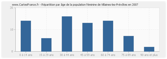 Répartition de la population féminine de Villaines-les-Prévôtes par âge en 2007 :