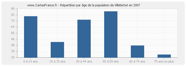 Répartition de la population de Villebichot par âge en 2007 :