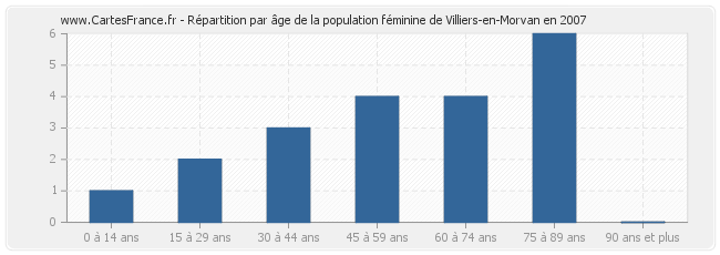 Répartition de la population féminine de Villiers-en-Morvan par âge en 2007 :