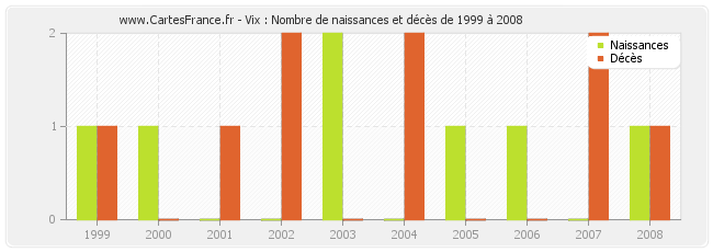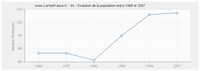 La population de Vix était de 108 habitants en 2007, 107 habitants en 1999, 95 habitants en 1990, 81 habitants en 1982, 85 habitants en 1975 et 85 habitants en 1968.