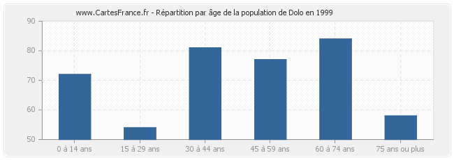 - Population de Dolo de 60 à 74 ans : 84 habitants