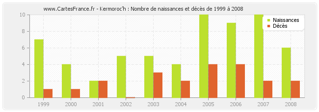 - Kermoroc'h en 2007 : 10 naissances et 2 décès