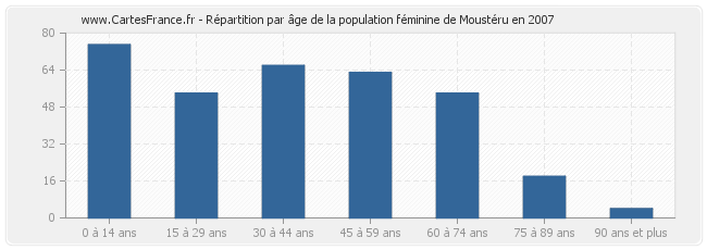 - Femmes de 0 à 14 ans habitant Moustéru : 75