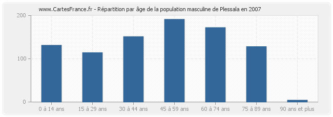 Répartition de la population masculine de Plessala par âge en 2007 :