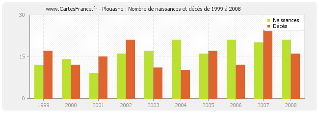 - Plouasne en 2008 : 21 naissances et 16 décès