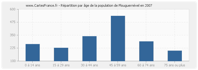 - Population de Plouguernével de 45 à 59 ans : 534 habitants