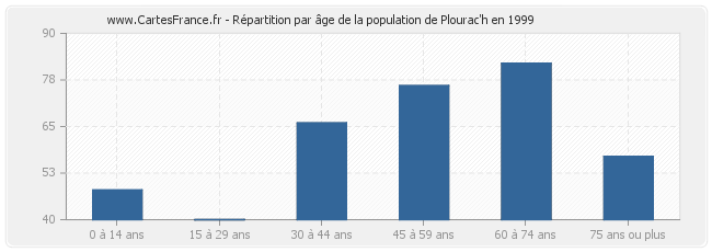 - Population de Plourac'h de 60 à 74 ans : 82 habitants