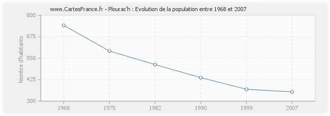 La population de Plourac'h était de 354 habitants en 2007, 369 habitants en 1999, 437 habitants en 1990, 513 habitants en 1982, 592 habitants en 1975 et 742 habitants en 1968.