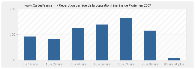 Répartition de la population féminine de Plurien par âge en 2007 :