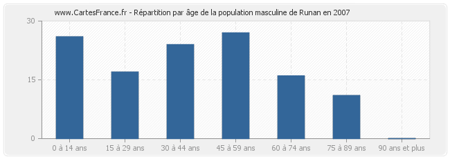 - Hommes de 0 à 14 ans habitant Runan : 26