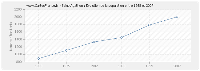 La population de Saint-Agathon était de 2 002 habitants en 2007, 1 783 habitants en 1999, 1 453 habitants en 1990, 1 331 habitants en 1982, 1 106 habitants en 1975 et 890 habitants en 1968.