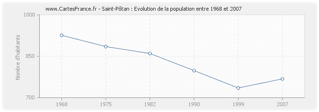 La population de Saint-Pôtan était de 768 habitants en 2007, 735 habitants en 1999, 798 habitants en 1990, 860 habitants en 1982, 885 habitants en 1975 et 926 habitants en 1968.
