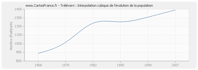 Cette courbe reprend l'historique de la population de Trélévern de 1968 à 2007 en interpolation cubique. Ceci permet d'obtenir plus précisément la population de la commune de Trélévern les années ou aucun recensement n'a été effectué.