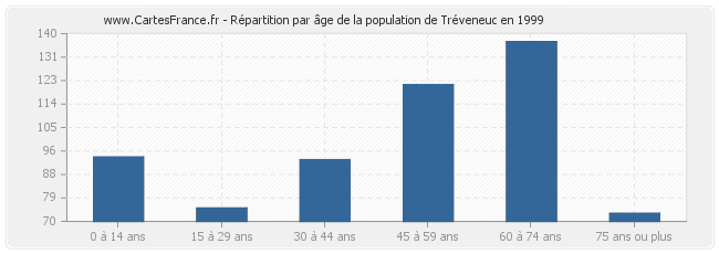 - Population de Tréveneuc de 60 à 74 ans : 137 habitants