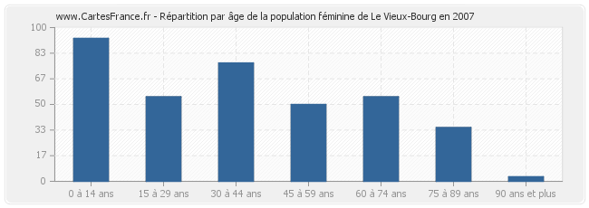 - Femmes de 0 à 14 ans habitant Le Vieux-Bourg : 93