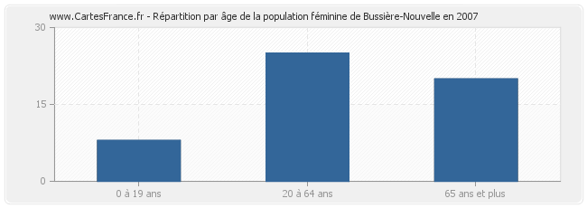 - Femmes de 20 à 64 ans habitant Bussière-Nouvelle : 25