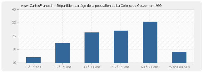 - Population de La Celle-sous-Gouzon de 60 à 74 ans : 33 habitants