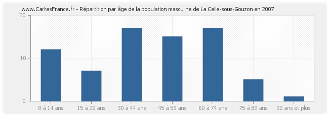 - Hommes de 60 à 74 ans habitant La Celle-sous-Gouzon : 17