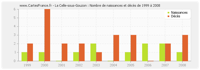 La Celle-sous-Gouzon : naissances et décès de 1999 à 2008