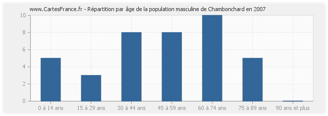 Répartition de la population masculine de Chambonchard par âge en 2007 :