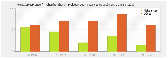 Chambonchard : évolution des naissances et décès de 1968 à 2007