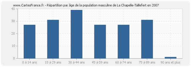 Répartition de la population masculine de La Chapelle-Taillefert par âge en 2007 :