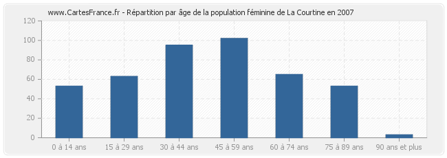 - Femmes de 45 à 59 ans habitant La Courtine : 102