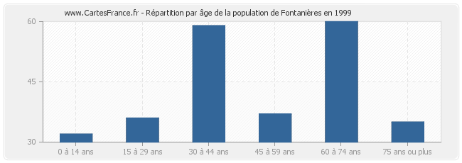 - Population de Fontanières de 30 à 44 ans : 59 habitants