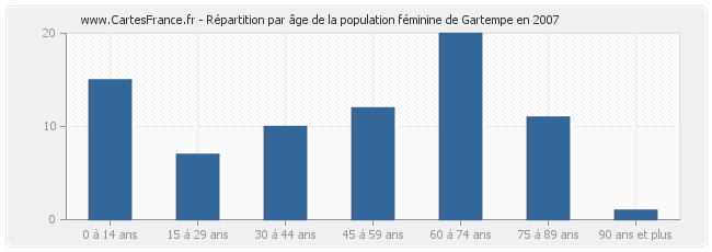 Répartition de la population féminine de Gartempe par âge en 2007 :
