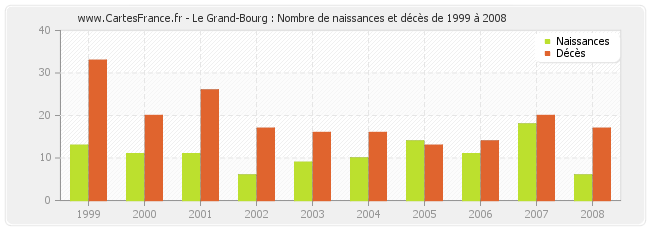 - Le Grand-Bourg en 2008 : 6 naissances et 17 décès