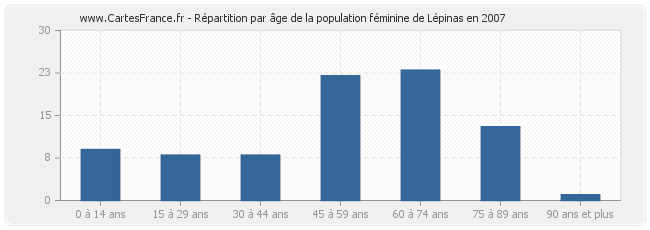 Répartition de la population féminine de Lépinas par âge en 2007 :