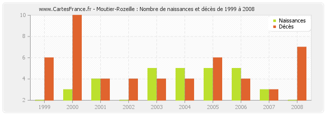 Moutier-Rozeille : naissances et décès de 1999 à 2008