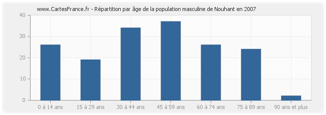 - Hommes de 0 à 14 ans habitant Nouhant : 26