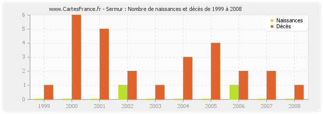 Sermur : évolution des naissances et décès de 1968 à 2007