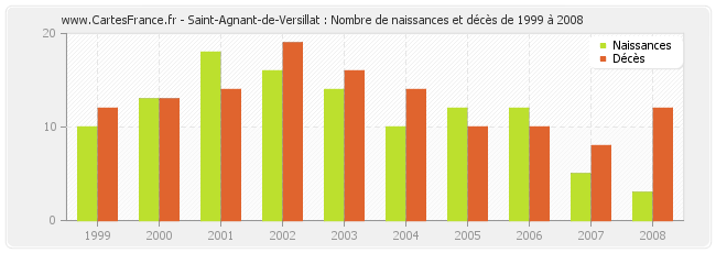 Saint-Agnant-de-Versillat : naissances et décès de 1999 à 2008