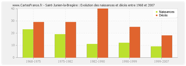Saint-Junien-la-Bregère : évolution des naissances et décès de 1968 à 2007