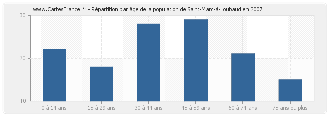 - Population de Saint-Marc-à-Loubaud de 45 à 59 ans : 29 habitants