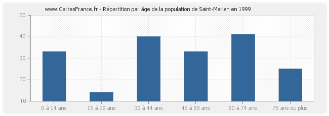 - Population de Saint-Marien de 45 à 59 ans : 33 habitants