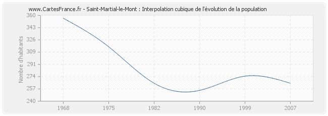 Cette courbe reprend l'historique de la population de Saint-Martial-le-Mont de 1968 à 2007 en interpolation cubique. Ceci permet d'obtenir plus précisément la population de la commune de Saint-Martial-le-Mont les années ou aucun recensement n'a été effectué.