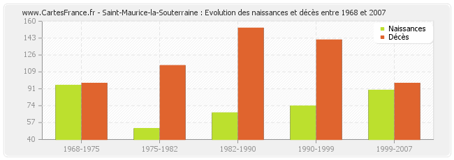 Saint-Maurice-la-Souterraine : évolution des naissances et décès de 1968 à 2007
