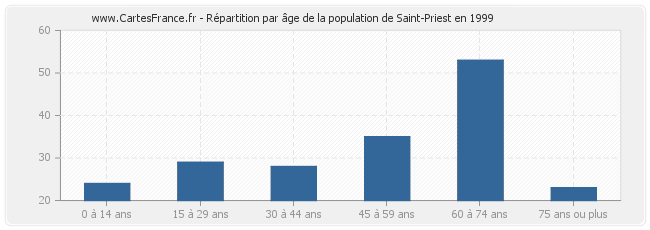 - Population de Saint-Priest de 60 à 74 ans : 53 habitants