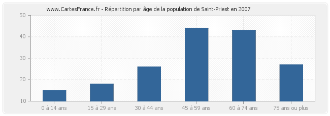 - Population de Saint-Priest de 45 à 59 ans : 44 habitants
