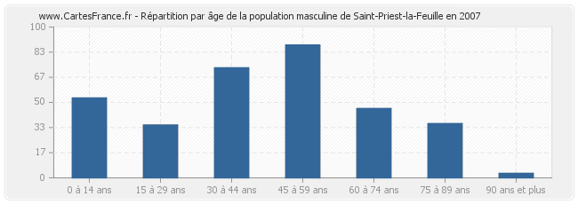 Répartition de la population masculine de Saint-Priest-la-Feuille par âge en 2007 :