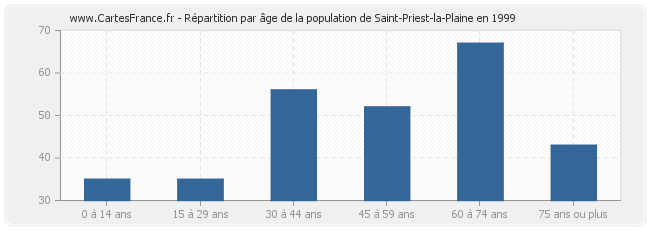 - Population de Saint-Priest-la-Plaine de 60 à 74 ans : 67 habitants