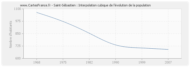 Cette courbe reprend l'historique de la population de Saint-Sébastien de 1968 à 2007 en interpolation cubique. Ceci permet d'obtenir plus précisément la population de la commune de Saint-Sébastien les années ou aucun recensement n'a été effectué.