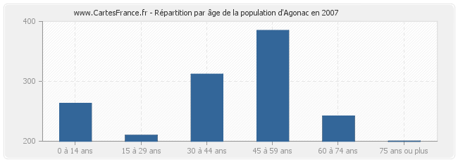 - Population d'Agonac de 45 à 59 ans : 385 habitants