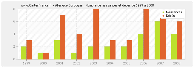 Alles-sur-Dordogne : naissances et décès de 1999 à 2008