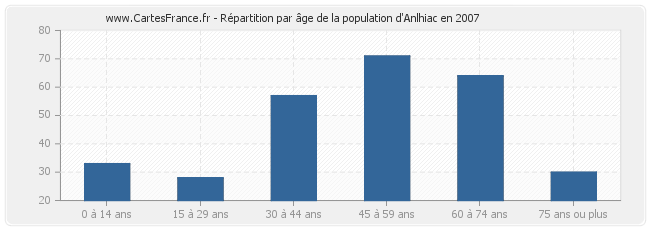 - Population d'Anlhiac de 75 ans ou plus : 30 habitants